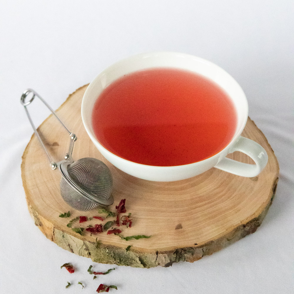 Die fruchtig-herbe Kornelkirsche hat hier ihren großen Auftritt. Unterstützt durch Marokkanische Minze erhält der Tee Frische. Ein frisch – fruchtiger Tee.